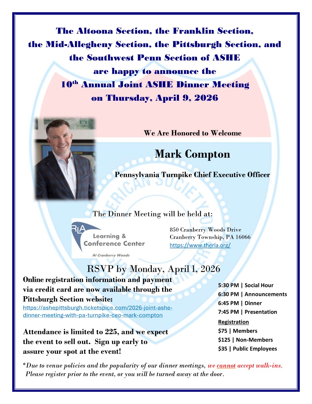 10th Annual Joint ASHE Dinner Meeting with PA Turnpike CEO Mark Compton