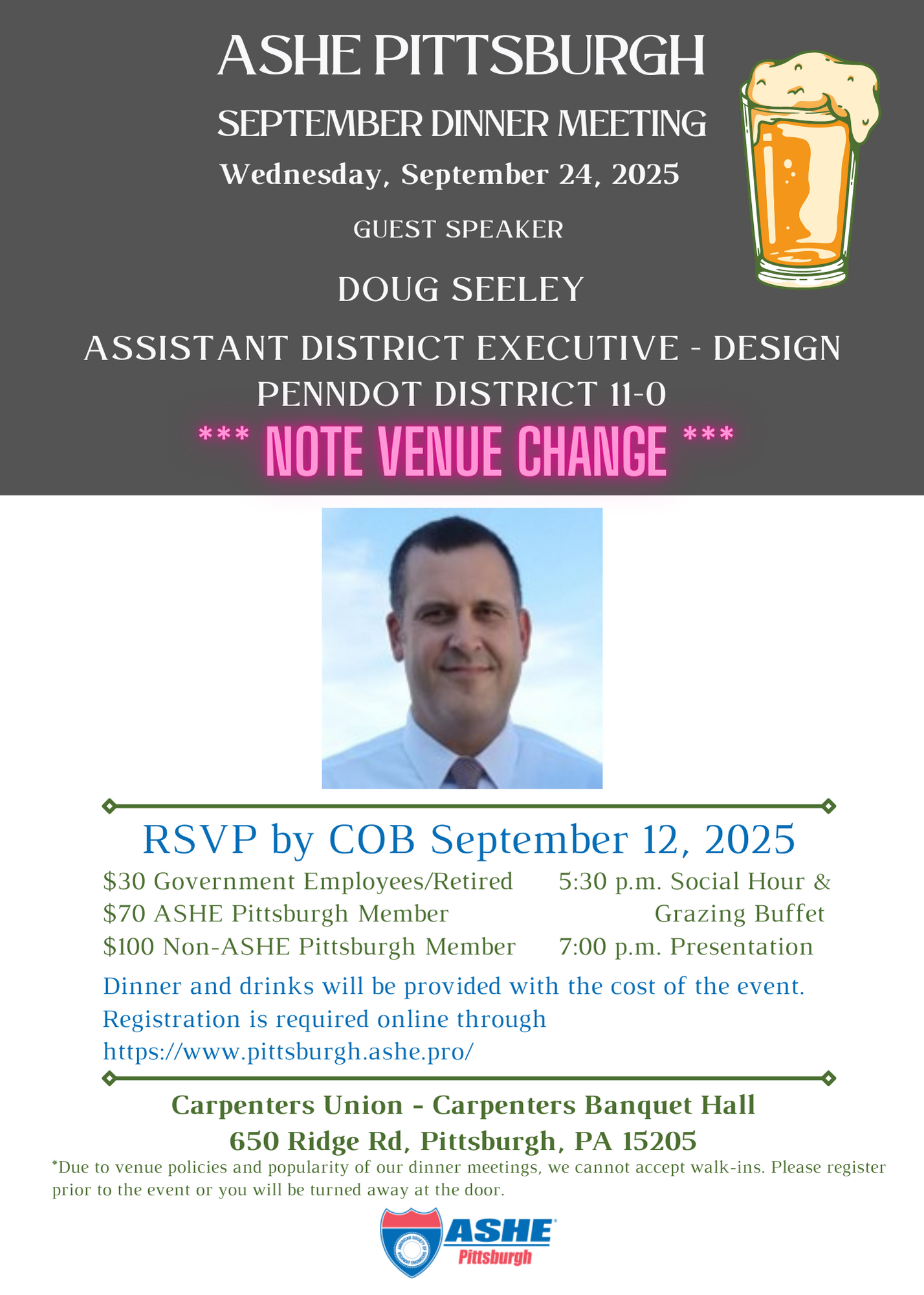 ASHE Pittsburgh September Dinner Meeting with Doug Seeley