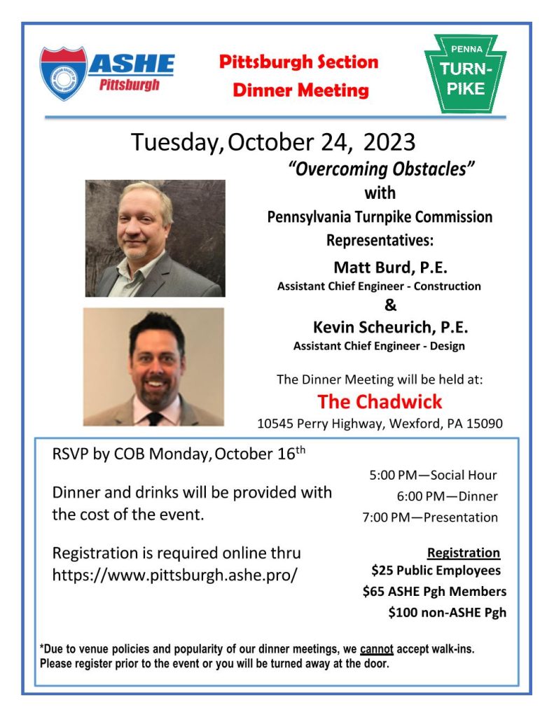 October Dinner Meeting with Pennsylvania Turnpike Commission!